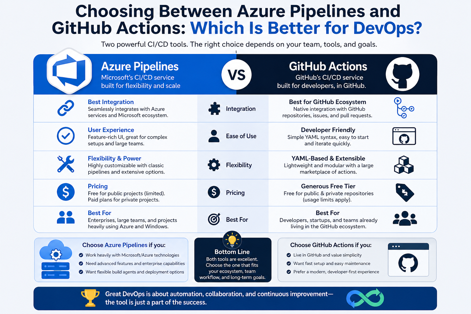 As DevOps continues to evolve, the distinction between the two may blur, but their core philosophies will likely remain the same: GitHub Actions focusing on developer-first simplicity, and Azure Pipelines focusing on enterprise-grade control and scalability.