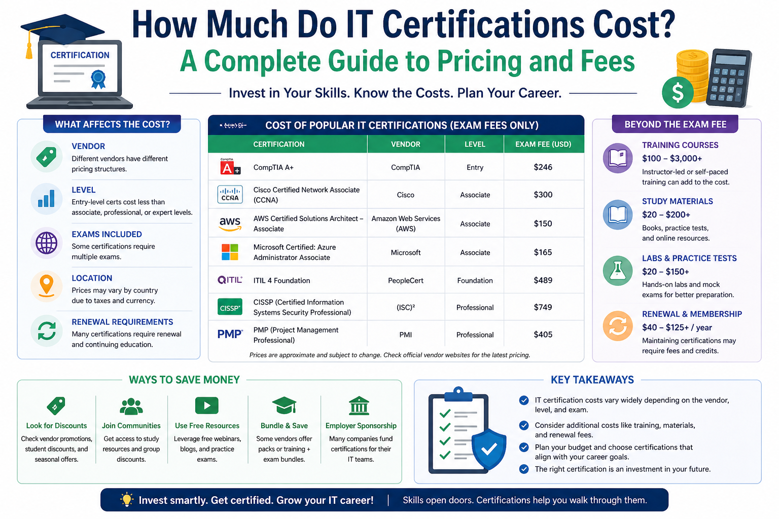 IT certification costs should be viewed as part of a broader professional investment rather than a single expense. While the financial commitment can vary widely depending on the path chosen, the long-term benefits often outweigh the initial costs when certifications are selected wisely.